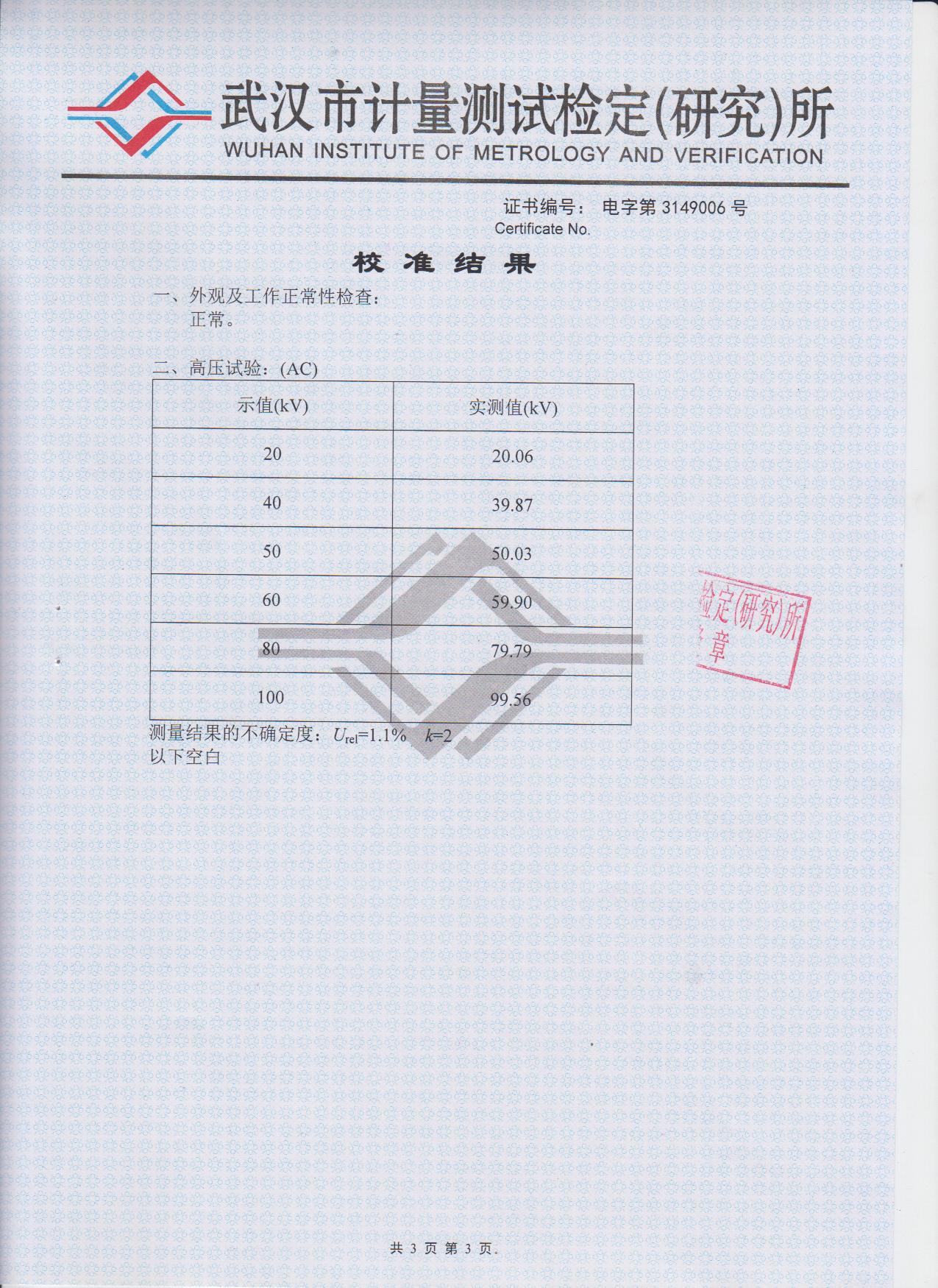 | 工頻耐壓水平 | 110kV/1min | |