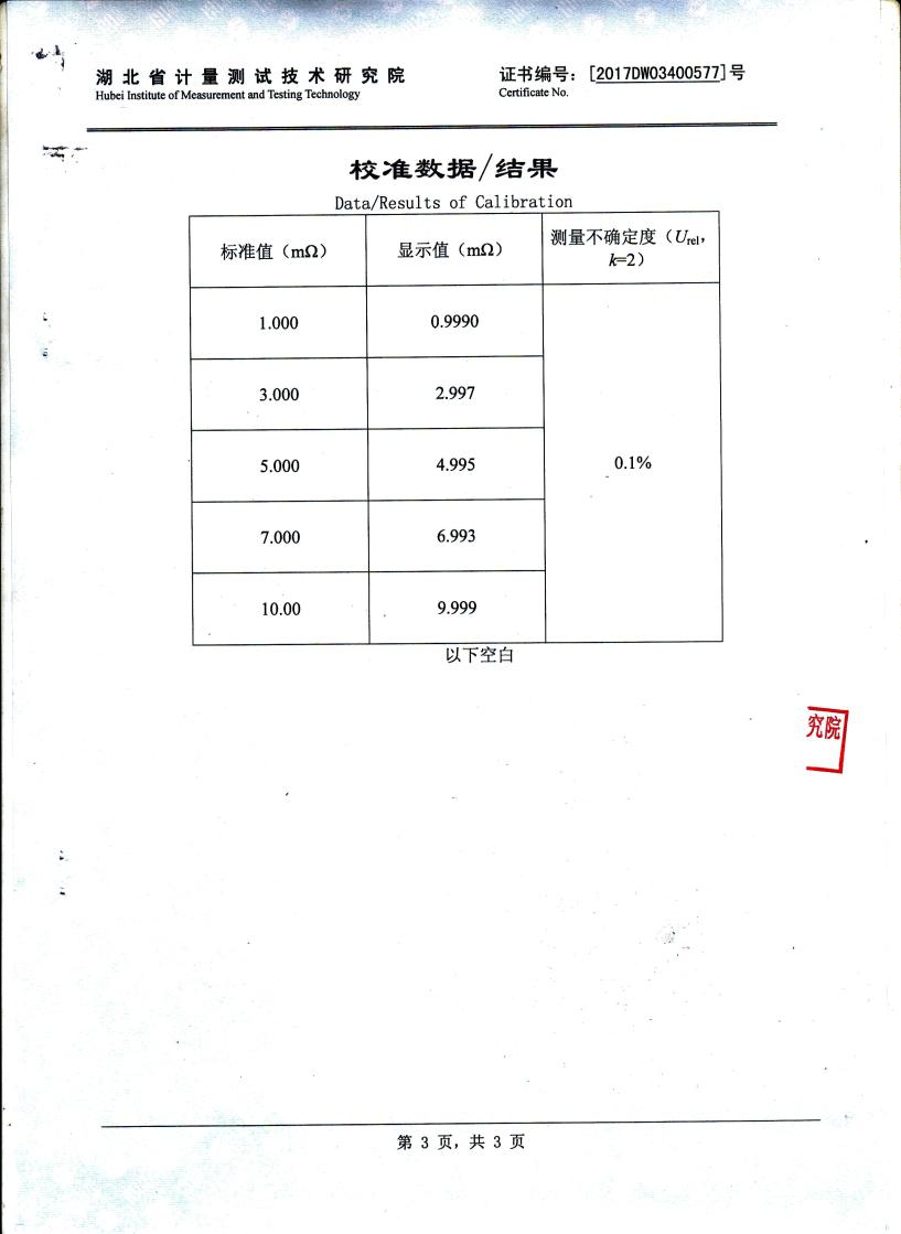 | 分辨率 | 0.1μΩ |