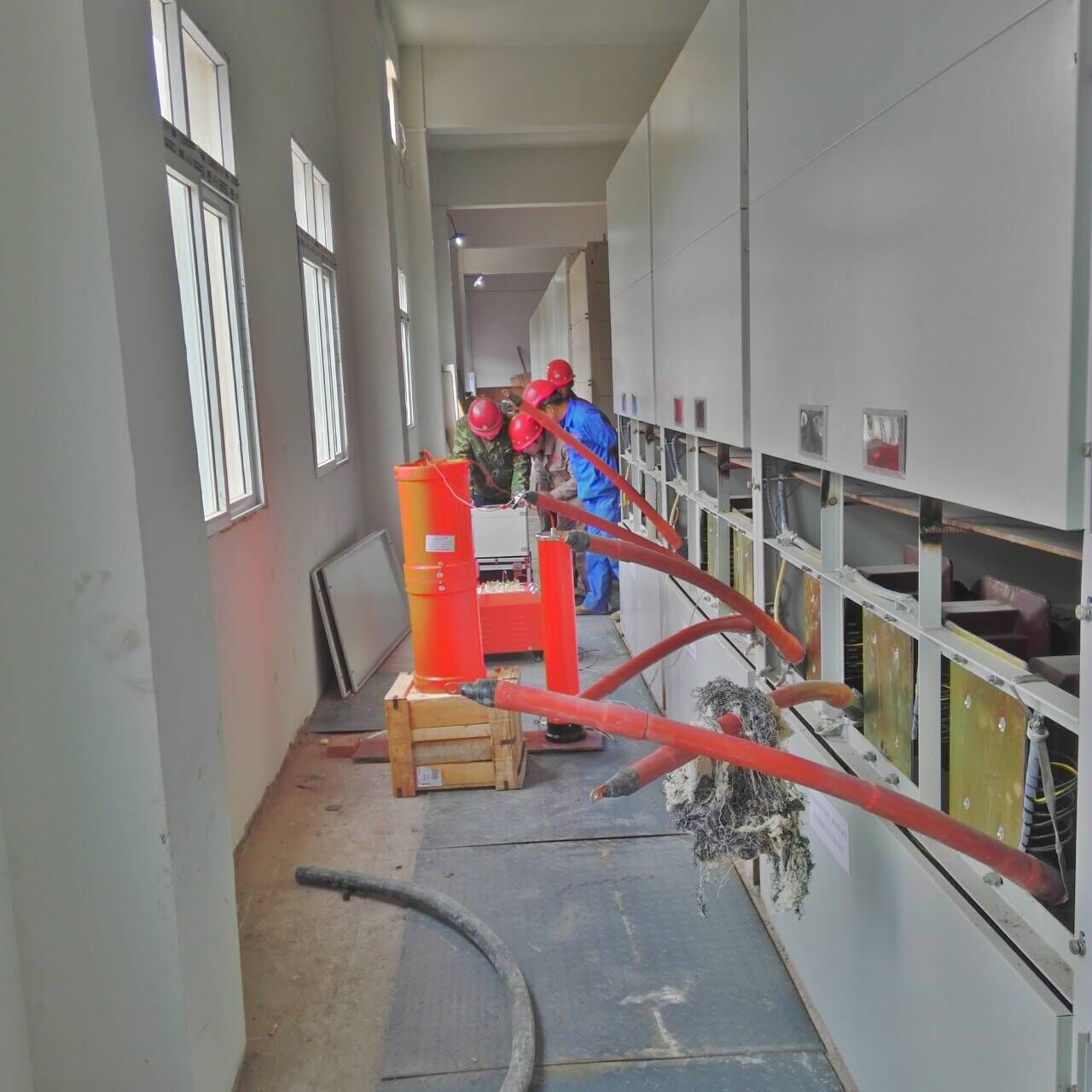 此次調(diào)試和培訓(xùn)的是YTC850-108kVA/108kV變頻串聯(lián)諧振試驗裝置,李工對設(shè)備的使用,接線方法進行了實地操作和詳細的講解,以及對精度和數(shù)值都做了詳細的講解。我公司的設(shè)備比較先進,操作也簡便,使用方便,讀數(shù)的準確度高。試驗和培訓(xùn)工作順利完成。