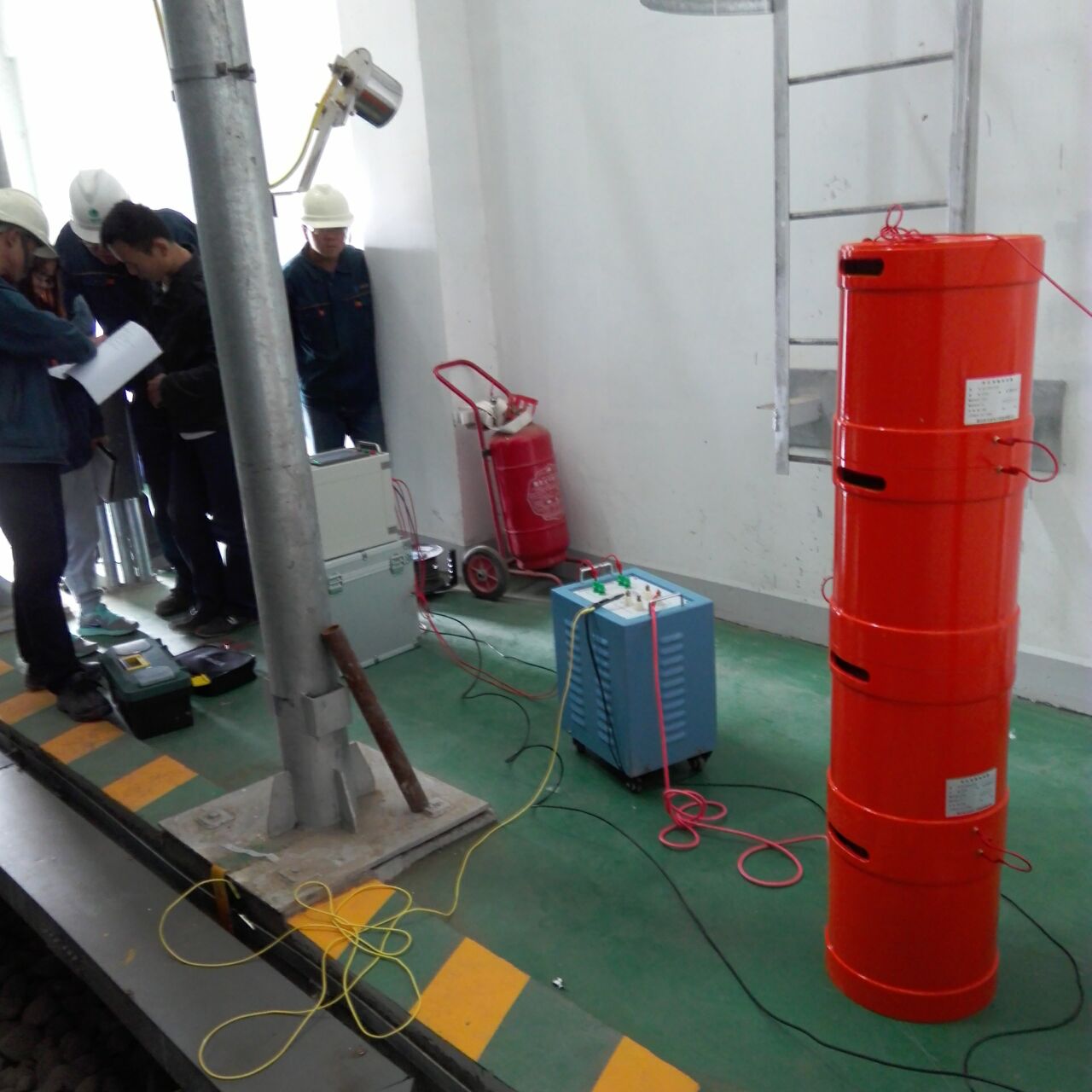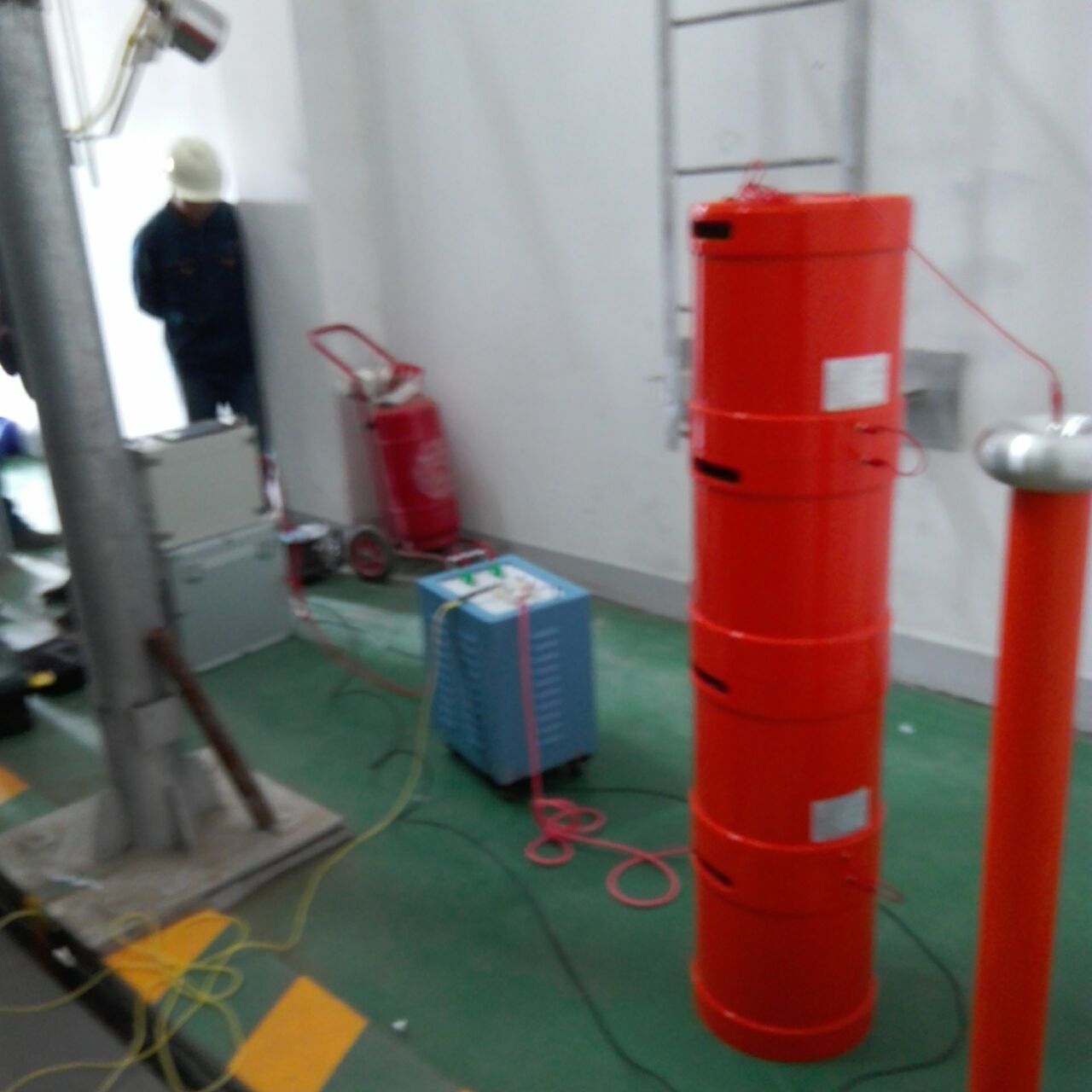 此次培訓的主要設備是我公司的優(yōu)質產品:YTC850-108/108變頻串聯諧振試驗裝置,該裝置主要針對10kV、35kV電纜, 35kV及以下電壓等級開關、GIS、互感器、斷路器等變電站設備的交流耐壓試驗設計制造。設備所需電源容量大大減小。串聯諧振電源是利用諧振電抗器和被試品電容諧振產生高電壓和大電流的,在整個系統中,電源只需要提供系統中有功消耗的部分。設備的重量和體積大大減少,改善輸出電壓的波形。防止大的短路電流燒傷故障點等優(yōu)質特點。