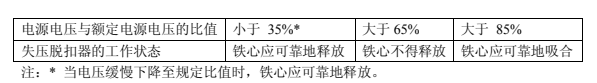 1)直流或交流的分閘電磁鐵,在其線圈端鈕處測得的電壓大于額定值的 65%時,應可靠地分閘;當此電壓小于額定值的 30% 時,不應分閘;