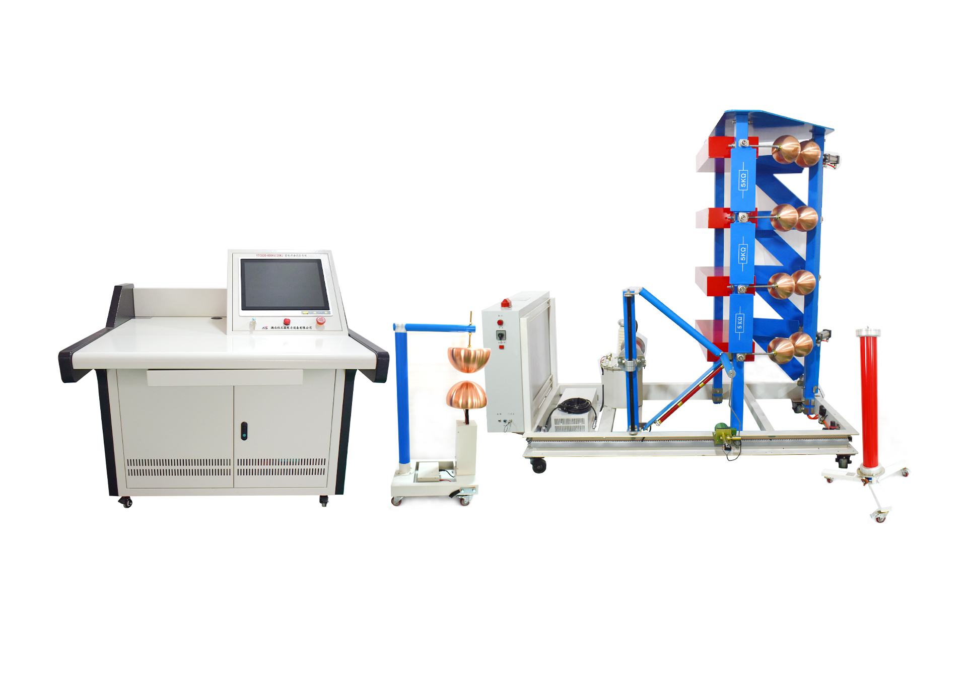 在人類所處的自然環(huán)境中,電閃雷鳴屬極為普遍之自然力現(xiàn)像,其落擊之處將顯現(xiàn)出極高之脈沖電流與電壓,且周邊區(qū)域亦會(huì)隨之產(chǎn)生較高水平的脈沖電壓。同樣地,于電力系統(tǒng)之內(nèi)的開關(guān)設(shè)備之合斷操作環(huán)節(jié),亦可能引發(fā)瞬間的脈沖電壓現(xiàn)象。此類突顯之瞬態(tài)脈沖電壓幅度常高達(dá)數(shù)十千伏乃至幾百千伏以上,這無疑將對(duì)設(shè)備造成損害,甚至威脅到人員生命安全。因此,開展沖擊電壓實(shí)驗(yàn)研究顯得尤為重要。另一方面,通過模擬自然雷電現(xiàn)象以探究放電機(jī)理,同樣具有深遠(yuǎn)的科學(xué)價(jià)值。在此過程中,我們常常依賴雷擊沖擊試驗(yàn)系統(tǒng)這套裝置來實(shí)現(xiàn)相關(guān)研究。接下來,我將詳細(xì)闡述這套裝置的主要功能及其應(yīng)用。
