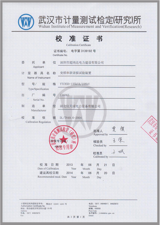 首頁 > 預防性檢測設備 > 鑒定證書 >